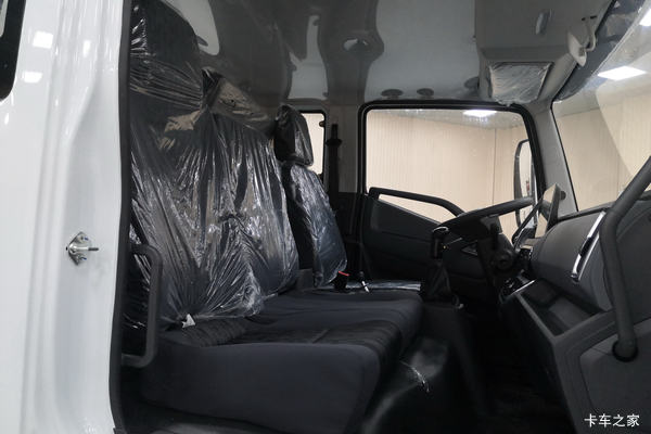 和亮眼的珍珠白外观不同,跃进 运霸H500的内饰整体采用黑色的设计,非常低调。准乘三人的驾驶室空间非常的大,搭配大面积的挡风玻璃让驾驶室看起来更加通透,十分现代。