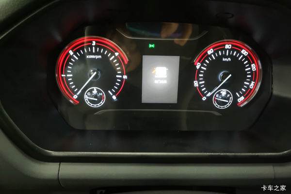 仪表部分采用机械仪表+液晶屏的组合设计,实时显示转速时速、水温油量,帮助卡友更好的判断车的装填。夜景部分显示的则是一些基本的行车信息,内容非常丰富。搭配大尺寸的中控液晶屏科技感满满!