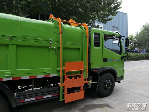 在货厢的右侧带有一个垃圾桶举升装置,可以轻松的清运垃圾废物,省去人工装卸,省时省力。
