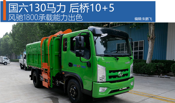 我们拍摄的这款风驰1800和很多城市的渣土清运车辆一样,采用绿色涂装,很适合垃圾清运及渣土运输工况。