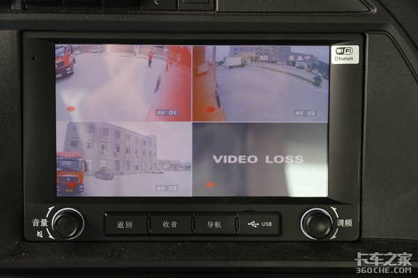 中控上的MP5显示屏可以随时查看四路摄像头,由于现在这款车还没有匹配挂车,所有尾部摄像头信号并未接入。