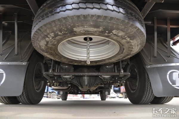 该车采用前3后5+2钢板悬架结构,配备4.5吨级后桥,能够很好的兼顾到整车自重和承载力。配备7.00R16LT 6PR规格轮胎,后桥速比为4.875。
