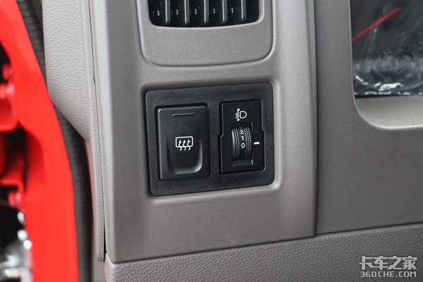 在主驾右侧布局有断气刹和货厢升降开关,位置设计合理,我们也进行了实际测试,驾驶员可以很轻松的进行操作。此外,旁边还设有水杯架、储物槽等放置空间,大大提升了实用性。