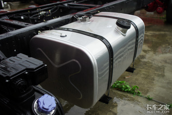 这款车的后桥采用153后桥,后桥速比4.875。采用前3后4+3的钢板弹簧悬架,在轻量化的同时也能保证承载性。在轻量化方面,这款采用铝合金油箱、铝合金储气筒、真空胎、少片簧等,能够降低整车自重500公斤左右,还是非常可观的。