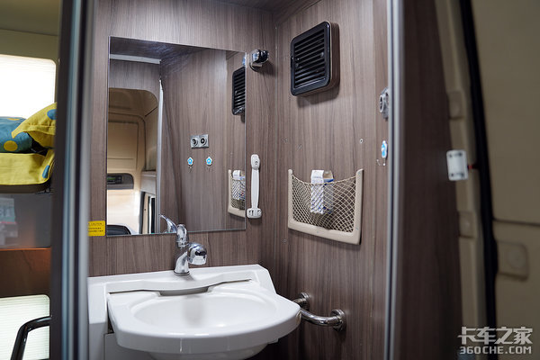 也许很多人会关心卫生间的密水性,总不能洗完澡,驾驶室中弄得到处都是水,还着急赶路呢,谁有时间墩地....不过大可放心,就连推拉门都是防水处理过的,尽管在卫生间中放肆,水一滴也溅不出来!