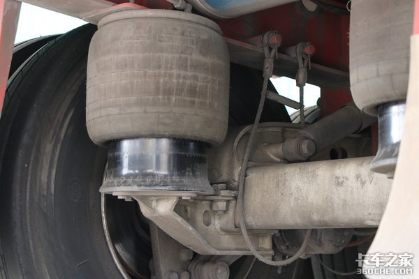 然而这款挂车的工字梁和普通的美式悬架不同——它并不是直接压在了车轴上方,而是绕了车轴一圈,这样一来就能够延长空悬的行程,获得更好的减震效果,这对于国内的复杂路况来说,会有很好的适应能力。
