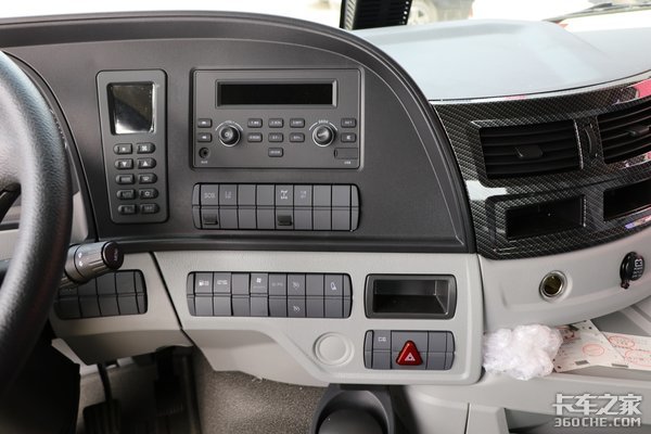中控台设计走的简洁风,操作区域按键分布有序,集成自动空调、差速锁、收音机、油箱加热、主副油箱切换、定速巡航、USB接口、12V电源等,整体布局靠近主驾一边,方便驾驶员操作。
