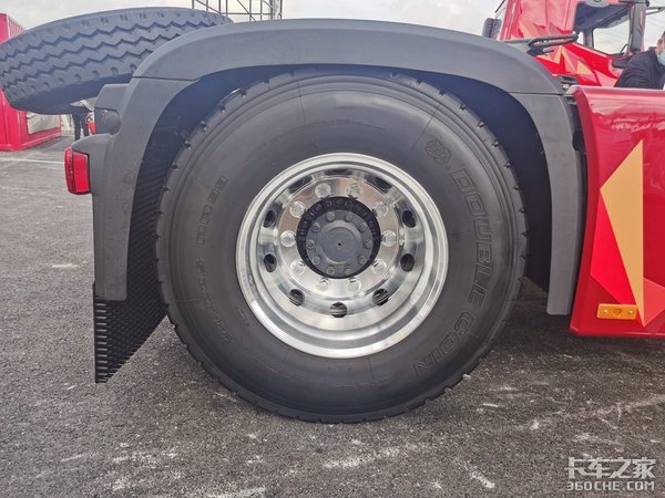 轮胎是装配了295/80R22.5型号的双钱牌真空胎,全车标配铝合金轮圈,可以很好的降低该车的自重。
