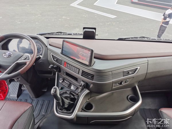 实拍的这款红岩杰狮H6驾驶室也进行了升级换代,驾驶室采用高顶准平地板标长驾驶室,其内部高度为2.5m,整个驾驶室空间很大,待在里面不会有压抑的感觉。整体设计十分精致,多处有棕色的设计,双色的碰撞设计看上去很有质感。