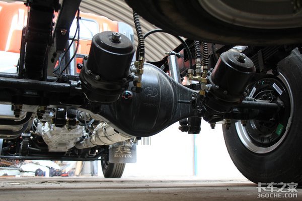 这款祥龙前桥采用的是1058型号前桥,搭配鼓式制动。后桥采用的是汉德1059系列6吨级后桥,后桥速比4.33,可以更灵活的适用于多种细分市场运输。