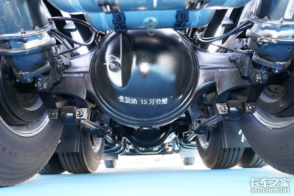 整车采用东风153前桥和方盛440后桥,前后桥均采用康迈免维护轮端,后桥速比为2.643。搭配上最大输出600马力的发动机,这个动力组合谁用谁知道。