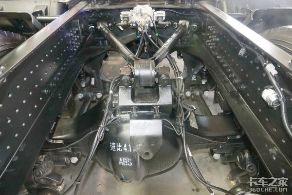 底盘方面,悬挂可以选择板簧悬挂和气囊悬挂两种,满足不同货物运输需求。并且车辆配备了V型推力杆,保证了车桥的稳定性。