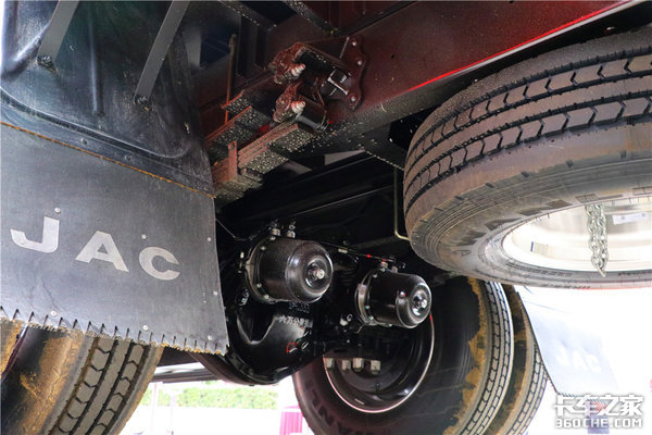 在江淮格尔发A5L 220马力高栏身上,油箱、储气罐、变速箱外壳、包括轮辋等地方都采用了铝合金材质,板簧也采用了前3后4+3形式的轻量化少片簧。经过一番"瘦身"后,车辆的整备质量不到8吨,做得还是不错的。