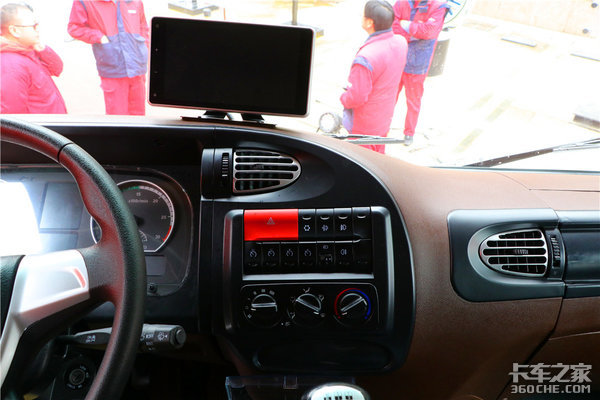 有影像就要有显示屏,江淮格尔发A5L 220马力高栏的显示屏固定在了中控台的上方,其外形更像是几年前流行的车载导航仪。不仔细看,可能很多人会把它当成一个放在车上的小型平板电脑。