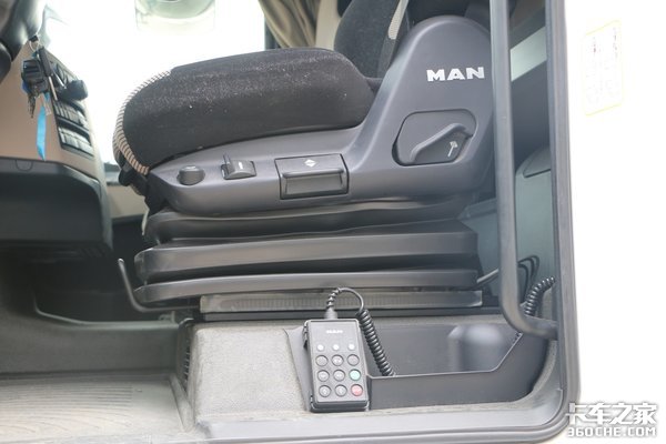 这款曼装配的是支持多项调节的气囊座椅,在座椅的下方装有控制车桥后提升的遥控器,操作非常方便。在空载或是装卸货物时,都可以使用这个功能,实用性很强。