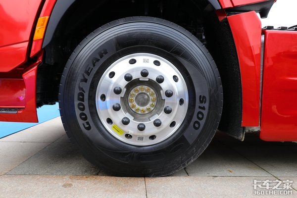 轮胎采用的是315/80R22.5型号,为了降低车辆自重,轮辋都采用的是铝合金材质。