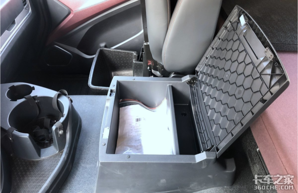 中控台上面带有双缝线设计软包材料,目前国内牵引车更多的还是采用硬塑材质,车中采用这样软包工艺的可谓是少之又少。