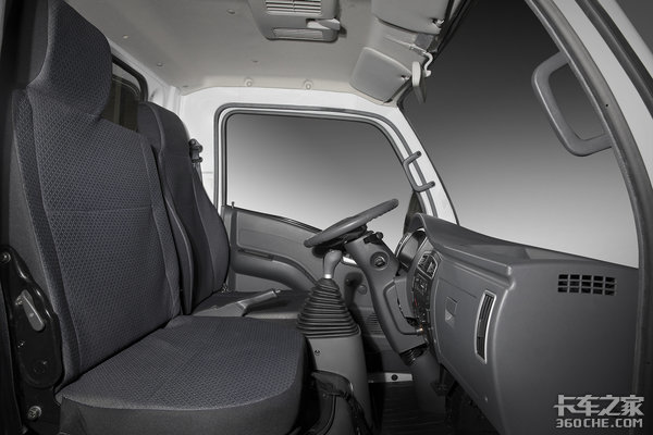 这款车的驾驶室驾乘起来还是比较宽敞的,基于其4.6万元的价格,其内饰就要相对简单一些,但是也够用了。驾驶室内配色整体以深灰+浅灰为基调,抗污性非常不错。驾驶室内标配有标准暖风、中控锁、收音机、MP3、遥控钥匙以及两个USB接口,皮布拼接的坐椅做工也是非常考究。