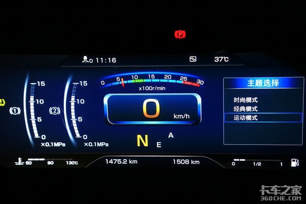 熟悉上一代欧曼EST-A的卡友应该知道,上代车型完全是移植的奔驰阿克托斯的MP3仪表只是在显示界面上进行了汉化,但是在全新的欧曼EST-A上,仪表可以说是大变样,整体采用了与解放J7的全液晶仪表,显示界面看起来还是非常具有科技感的。