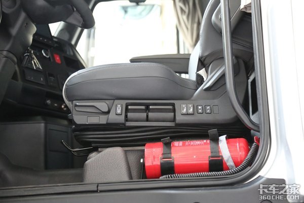 这款车的主驾驶座椅和汕德卡G7使用的配置相同,为气囊减震座椅,可以实现前端倾角调节,而且集成有式腰部支撑以及侧向支撑。这款车的副驾座椅同样支持按摩功能,非常给力。