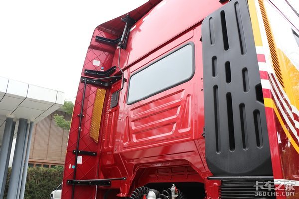 驾驶室的侧面也做了一些升级,从工具箱和卧铺装饰窗的位置来看,H6的驾驶室长度比现款要长一些,带来的好处就是卧铺会更宽。另外H6驾驶室轮眉的位置也更下沉,不像现款那么上挑,显得整个驾驶室更显大。