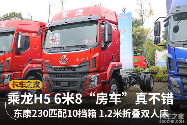 不言而喻,本文的主角说的就是乘龙H5车型了,本文的乘龙H5实拍车采用了一套新的动力链系统,常见的8挡箱不再装配,并且整车内饰采用房车化设计,大空间、双人床都安排上了,下面让我们来仔细看看这款车吧。
