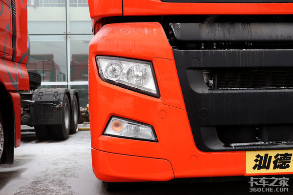 车辆采用了汕德卡车型一贯式的多边形分体式大灯,整体看起来也是非常协调的,上方灯组带有远光灯、近光灯和LED日行灯,下方则为转向灯和前雾灯,并且这个大灯还配备的是自动大灯哟,光线暗的时候都不用咱们手动开灯了。