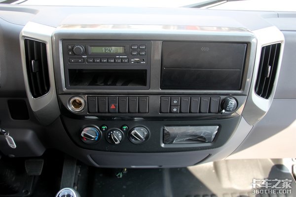 中控台的控制区域中规中矩,更注重实用性,但也采用了类似于碳纤维的饰板包边装饰,能够提升一定的档次感,这也是目前市场上大部分轻卡采用的设计标准。