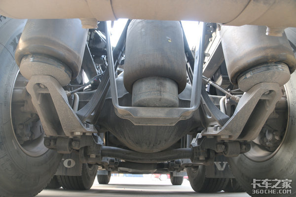 这款沃尔沃FH 540前桥采用2片抛物线钢板悬架,这也是目前轻量化标载物流运输车的常见配置。此外,如果卡友有需求的话,该车前桥也可以定制气囊悬架,通过调节气囊高度,让车辆适应性更加广泛,提高通过性,并且舒适性也会得到不少提升。另外,全车还采用盘刹制动,具备更加出色的散热表现和灵敏度。