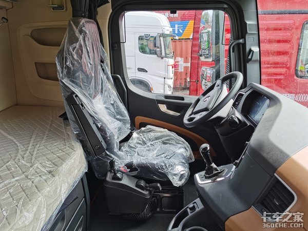 后桥则是保有量比较大的汉德单级减速桥,速比为3.7,这样的动力链搭配定位是散户运输,走南闯北不管是高速还是国道都可以应对。悬架方面实拍的车型前2后3片钢板悬架,同时也可以选装空气悬架,对于散户而言,钢板悬架更加适合,维保成本更低,可靠性更高。