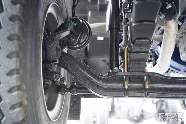 底盘采用了前10后9+7的钢板弹簧结构,多片簧能够带来更好的承载能力,装得多也能跑得很稳健。
