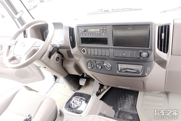 而驾驶室最亮眼的,莫过于中间的旋钮式挡杆。
