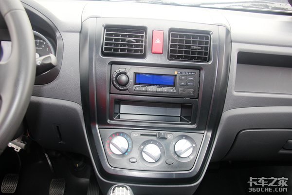 中控区域的布局依旧趋向乘用化,集成了空调出风口和实用性配置收音机、空调等主流配置。V型的空调旋钮布局具有较强的设计感,并且下方设置有点烟器接口,对于当前电子设备较多的现状颇为实用。
