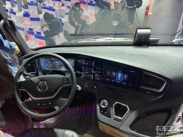 从图中可以看到,车辆匹配有全新设计的四幅式多功能方向盘和来自于格拉默的高配气囊座椅,并且还采用了平地板驾驶室,这对于提升驾驶室内部空间便利性有着极大帮助。