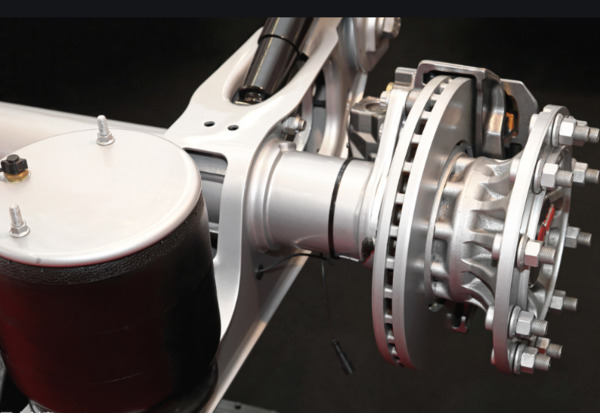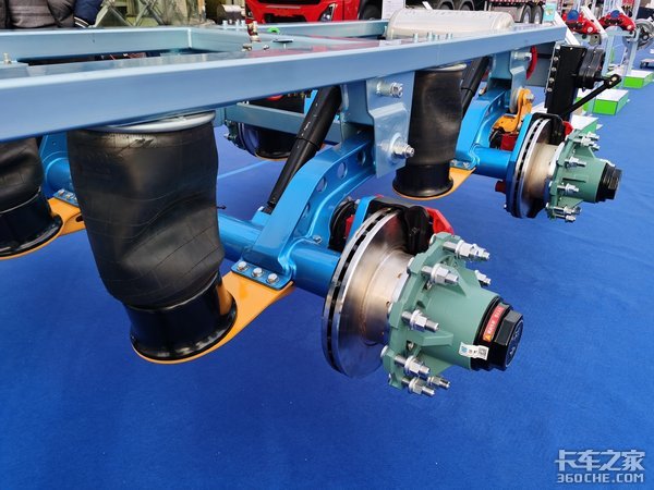 其次是空气悬架,众所周知空气悬架有一个比较大的作用就是感知整车的重量,配合EBS,可以根据车辆的重量来调节制动所需的气量等等,再加上盘式制动器,可以提升整体的制动效果。