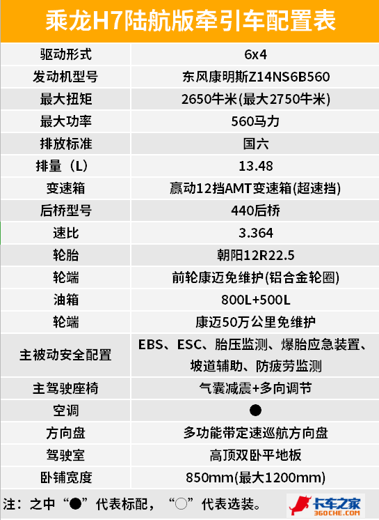 帅气的外观、强劲的动力、超长的续航以及较高的安全性都能够让乘龙H7陆航版车型很好的适应长途干线物流运输的使用场景需求。同时较高的车辆配置、大卧铺和大空间也能够让我们卡友的跑车生活更加的惬意舒适。(文/图 王超鹏)