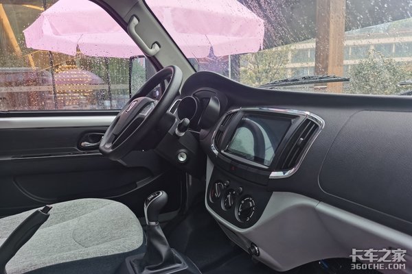 虽然这款车是小卡车型,但是其驾驶室内部的空间还是非常宽敞的。整个驾驶是内部采用浅灰+黑的配色,兼具了抗污与美观。实拍车标配的三幅式多功能方向盘,其操作完全和乘用车没有什么区别,非常给力。