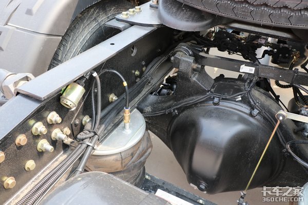 这款车在悬架形式采用前2片钢板弹簧,后气囊的设计,而空气悬架的好处就是可以帮助甩挂运输时提高运输效率。此外,油箱的容积为1150L,行车路途可以减少加油次数,提高续航里程。