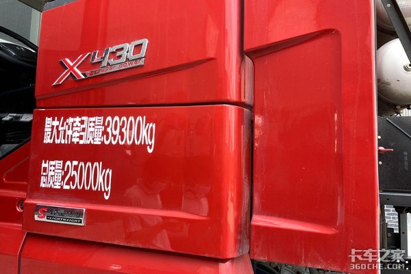 LNG牵引车比柴油牵引车稍微重一些,这款车的自重超过9吨,所以最大牵引的总质量是39吨出头。