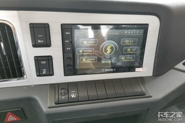 中长途运输用户一般会对中控台的功能丰富度提出更高要求。这款车的中控区域配备有多媒体大屏,内置天行健智行版系统,支持货车导航、视频监控、音乐、电影等应用。翻开应用中心,可以看到这款车还支持行驶记录打印、一键检测、故障提醒、胎压监测等强大功能,能帮助用户更合理地管理车辆。