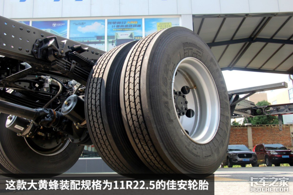 这款大黄蜂装配规格为11R22.5的佳安轮胎,根据发动机转速、变速箱挡位速比、后桥速比和轮胎型号,通过卡车之家车速计算器可以得出,这款大黄蜂在1300转的经济转速下车速可以达到64km/h。
