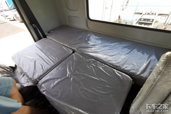 舒适性:实拍车的驾驶室采用的是高顶双卧平地板驾驶室,驾驶室内高达到了1米95,中间地板凸起仅为12cm,非常优秀。