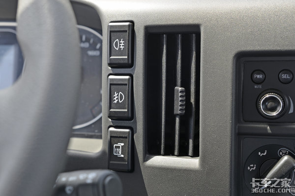首先我们卡友跑城乡倒短运输,大多数时间都处于停车等货阶段,座椅就成为了“家”。实拍车配备有中卡、重卡车型才会有的气囊减震座椅,带有角度可调和腰托功能,整体驾乘舒适性有保障。