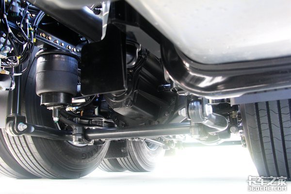 底盘结构上,实拍车型采用了前3钢板弹簧,后8气囊的悬架结构,更加适合快速装卸货的实际使用需求。