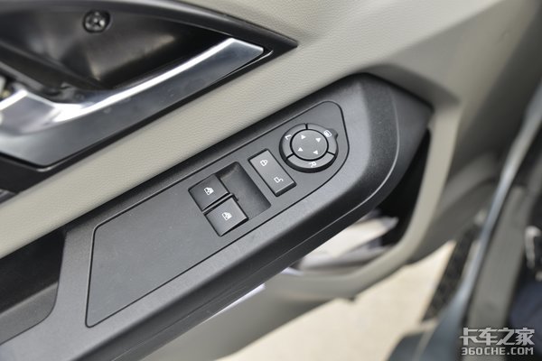 车门控制区域也有值得强调的亮点,最上面是左右后视镜的电动调节及电加热按键。卡友们拉货时经常需要在雨雪等恶劣天气下风雨兼程,后视镜电加热功能能帮助卡友们及时清除镜面水汽,保证驾驶员视野清晰。