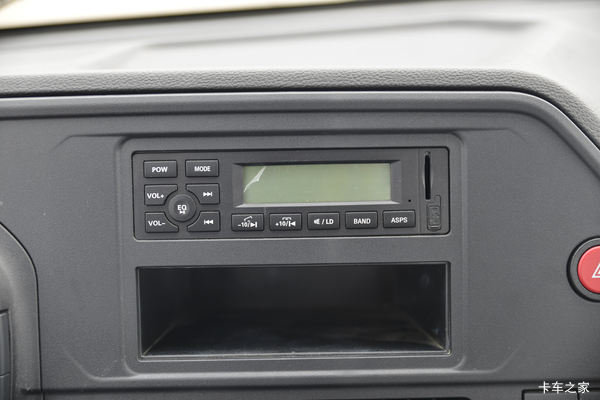 中控区域主要布置有收音机、DPF再生开关和电调数显空调等配置,整体布置看起来比较简洁,如果卡友们对娱乐功能要求较高的话,可以选装10寸多媒体大屏,这样就可以享受到倒车影像、高清MP5等功能。整个仪表台采用搪塑工艺,触感更好。