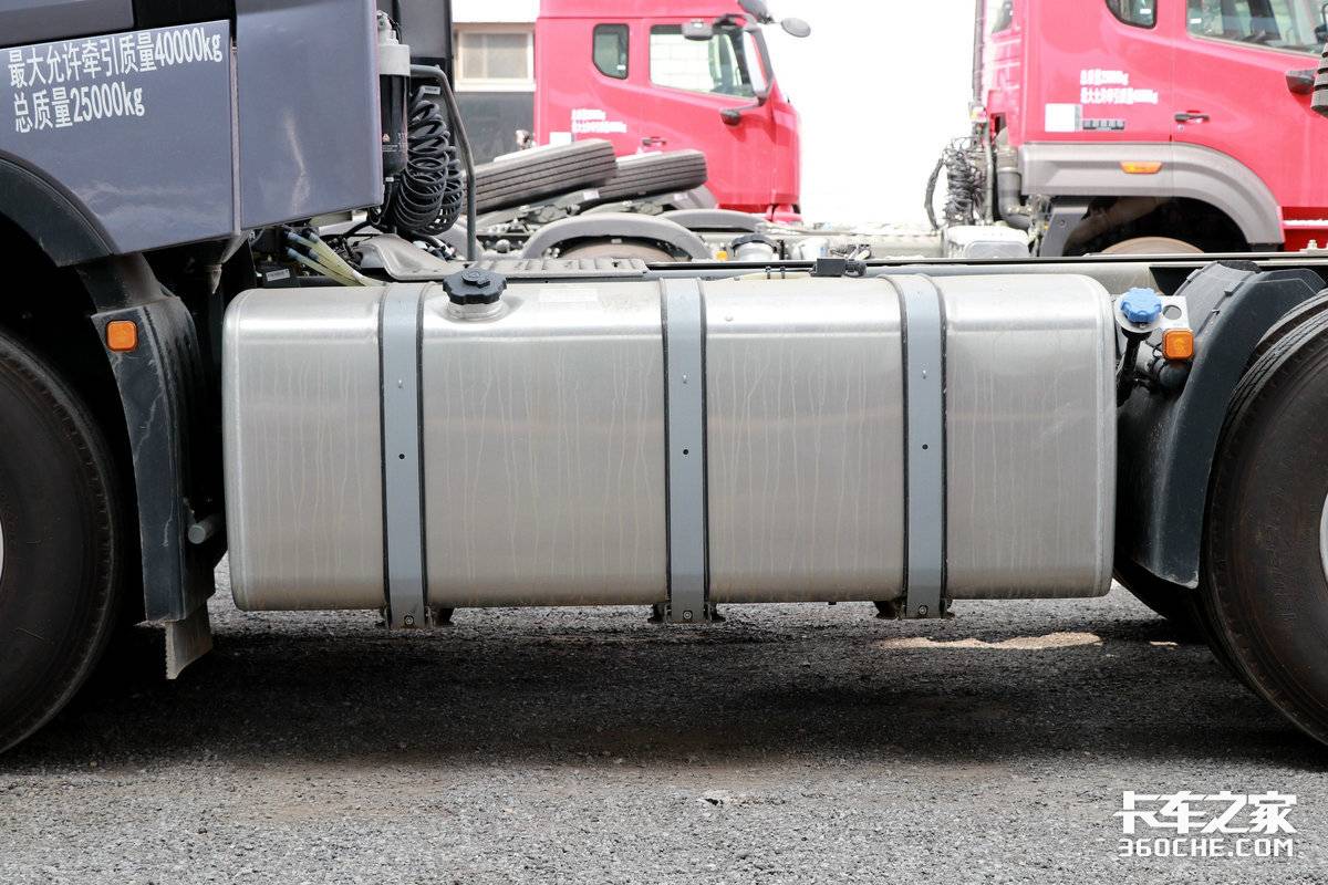 在油箱方面,实拍车型采用了主副油箱的设置,总共容积达到了1260升,可以为豪沃MAX提供接近4000km左右的续航里程,即便是跨越多省的干线运输也不在话下。为了达到这种大容积,豪沃MAX将尿素罐放置在了大梁内部,以此将主油箱的容积进一步延伸增大。