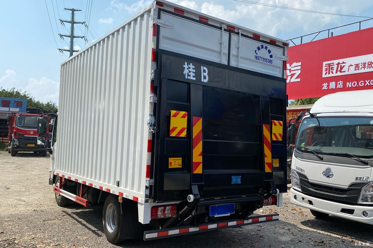 底盘方面,这款乘龙L2选择的是速比为4.33的295后桥,采用前3后3+2片渐变板簧悬挂。整车匹配规格为7.00R16的轮胎,装配有一个容积为120L的复合材质油箱。上装方面,这款车装配有一个规格为4200x2300x2300mm的厢式货箱,如果你担心这个宽度不好上牌,也可安装内宽2100mm的货箱。