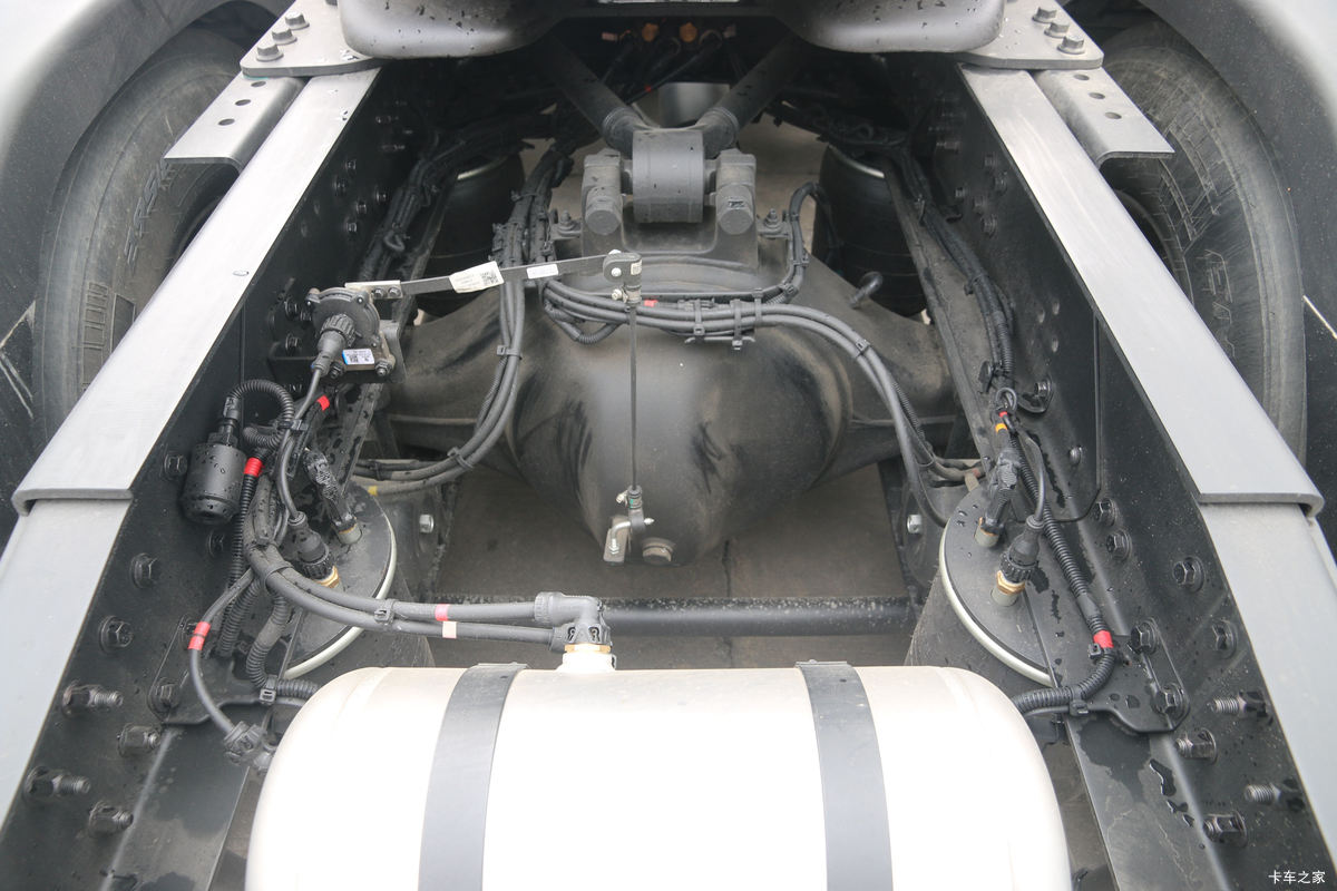 底盘方面东风商用车针对GX进行了专项升级,主要管线的布局和零部件安装位置的优化,GX的管线设计可以说是目前量产卡车当中最漂亮的之一,所有的管线都做到了互不干涉,可以有效提升管线的可靠性以及美观度。