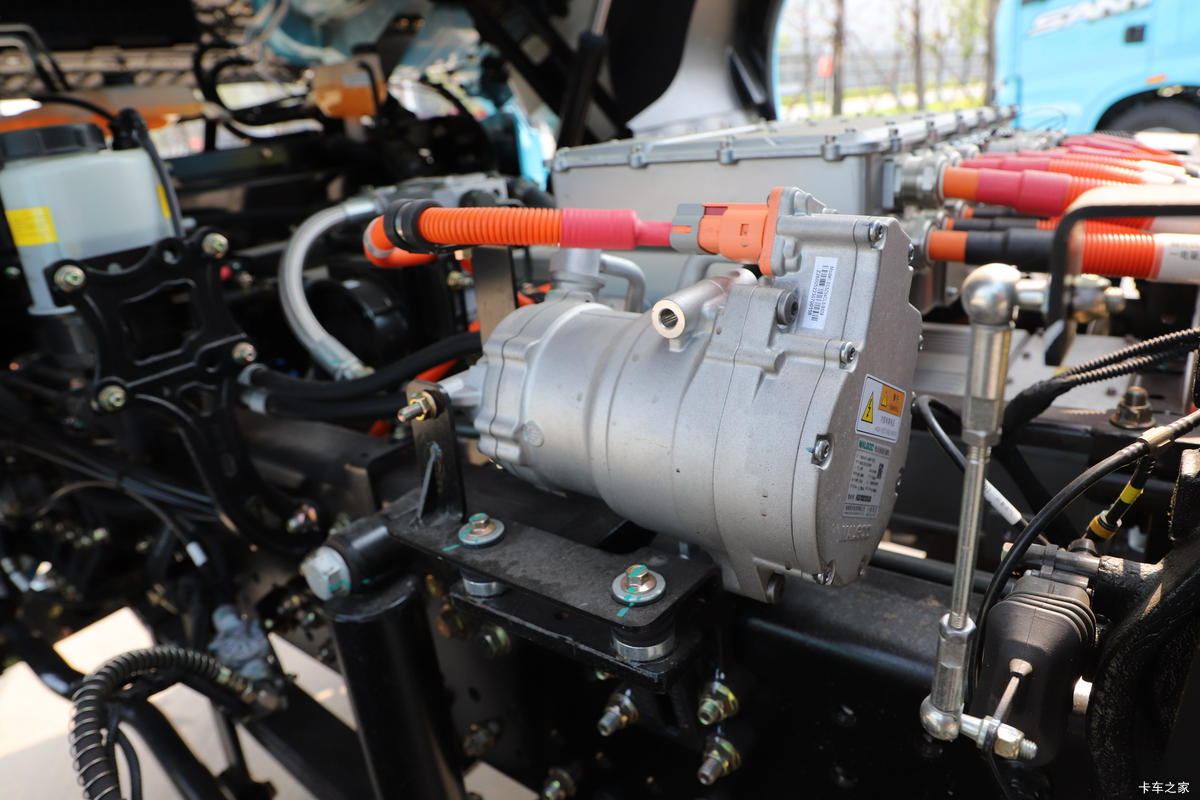 电机部分,实拍车配有峰值功率达405kW的高效大功率永磁同步电机,最大马力达到了550马力,最大输出扭矩为2400牛米。电机效率高达95%以上,动力更强劲、输出更稳定,保障用户高效出勤的用车需求。